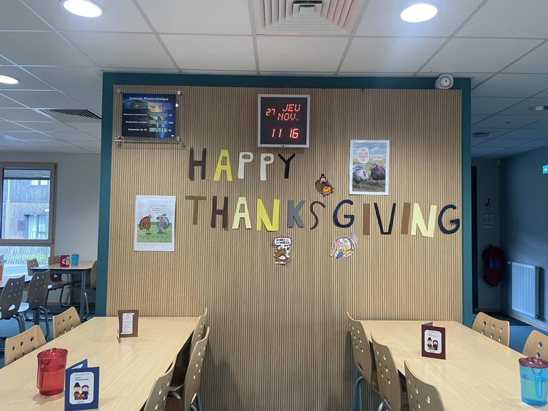 Happy Thanksgiving! The 5C have decorated the cafeteria to celebrate Thanksgiving on the 4th Thursday of November.