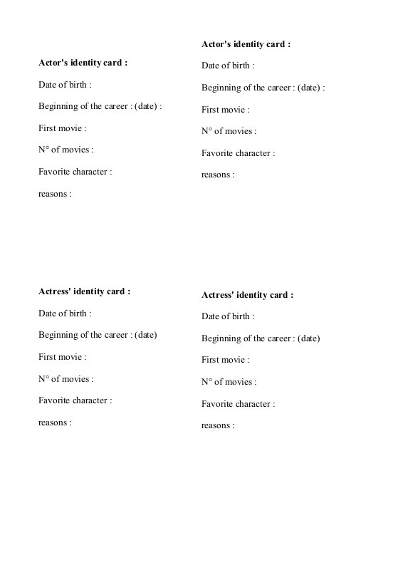 1. Actor'S Identity Card Worksheet