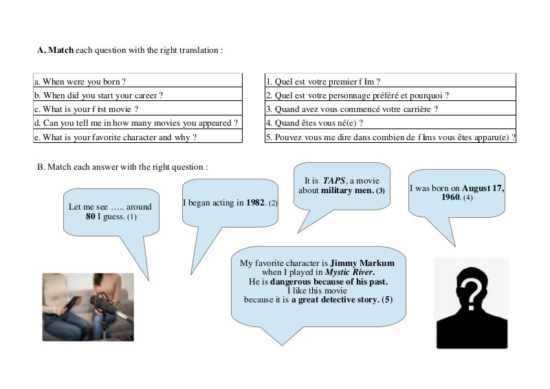 Correction de la fiche " Match Each question with the right answer"